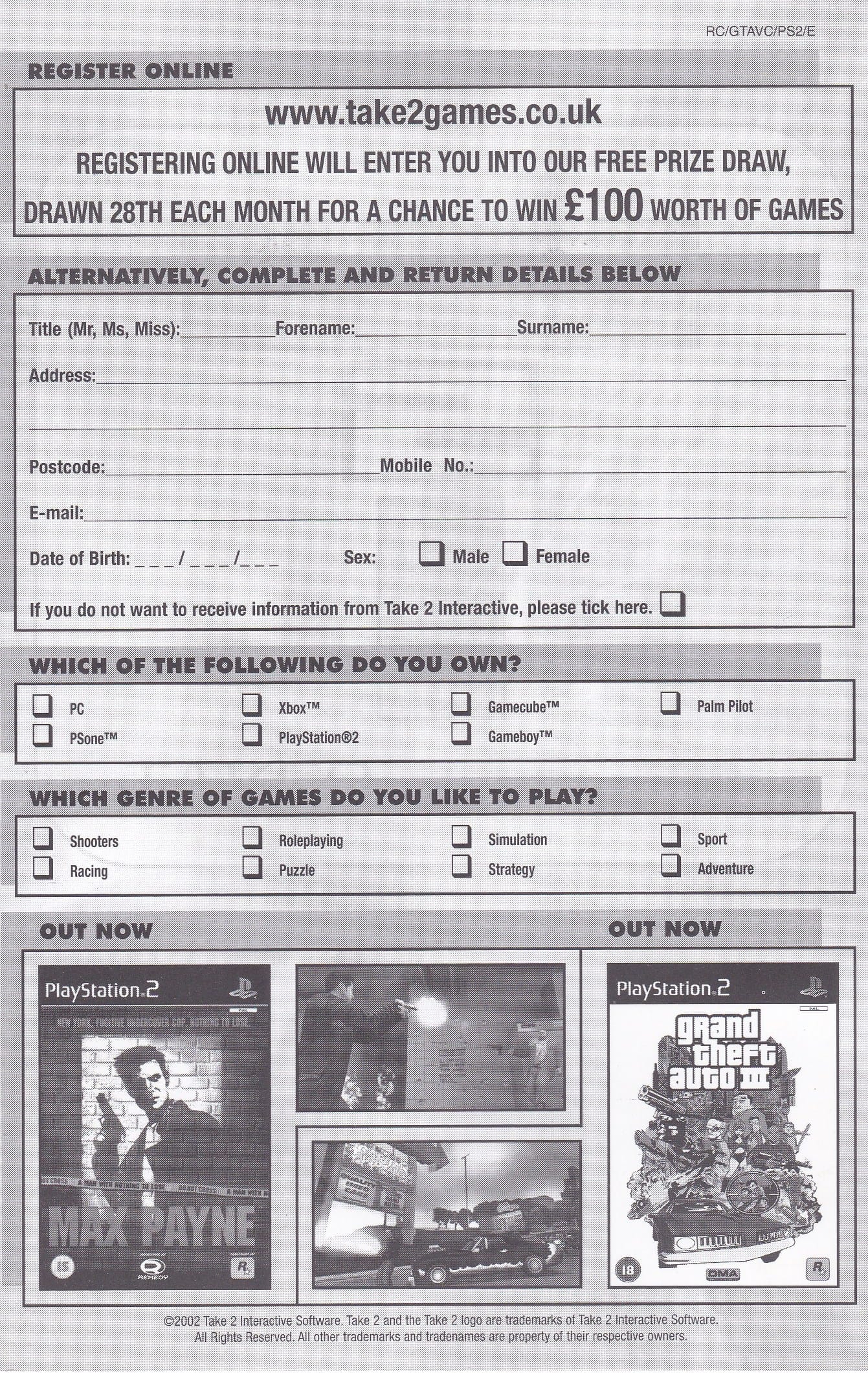 Playstation 2 - Grand Theft Auto: Vice City - Case and Inserts